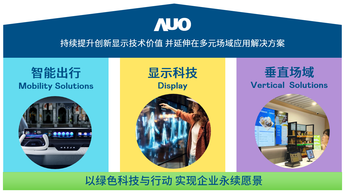 我们持续推动「双轴转型」,在精进显示技术附加价值(Go Premium),与深化垂直市场应用(Go Vertical)的策略下,对应爱游戏官网的优势竞争力与趋势,我们奠定显示科技、智慧移动、垂直场域三大永续营运支柱,在显示技术领域的根基之上,延伸布局多元场域应用解决方案。将先进显示科技助力智慧移动及垂直场域发展,并以绿色科技与行动为实践,在转型之路上贯彻永续经营之愿景。